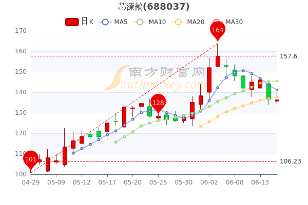 6月15日芯源微开盘报价135.6元,收盘于136.3元,跌0.22%。当日最高价为140.48元,最低达134.32元,成交量2万手,总市值为115.06亿元。