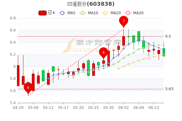 6月15日盘后消息,四通股份5日内股价下跌2.11%,今年来涨幅下跌-29.01%,最新报6.17元,成交额1312.94万元。