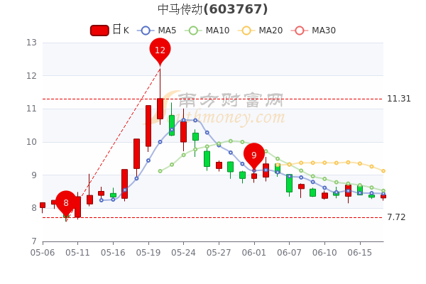 中马传动6月17日收报8.4元,涨0.84,换手率2.1%。