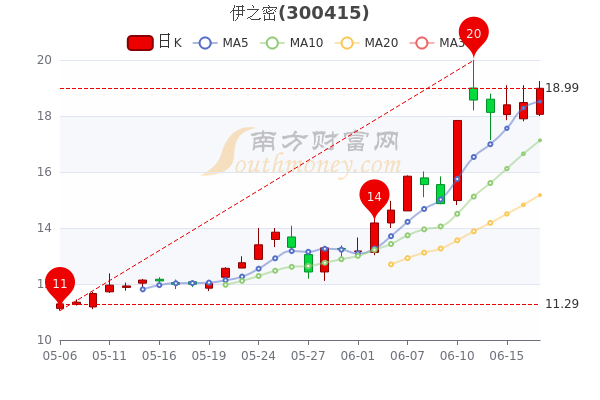 6月17日盘后消息,伊之密7日内股价上涨21.7%,最新涨2.76%,报18.99元,换手率6.24%。