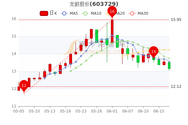 6月17日消息,龙韵股份5日内股价下跌6.39%,最新报13.15元,成交量2.73万手,总市值为12.27亿元。