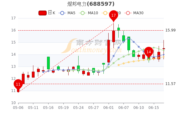 6月17日消息,煜邦电力开盘报价14.45元,收盘于14.5元。3日内股价上涨5.24%,总市值为25.59亿元。
