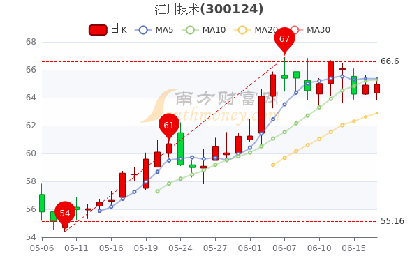 6月17日收盘消息,汇川技术收盘于64.95元,涨0.08%。今年来涨幅下跌-7.47%,总市值为1712.27亿元。