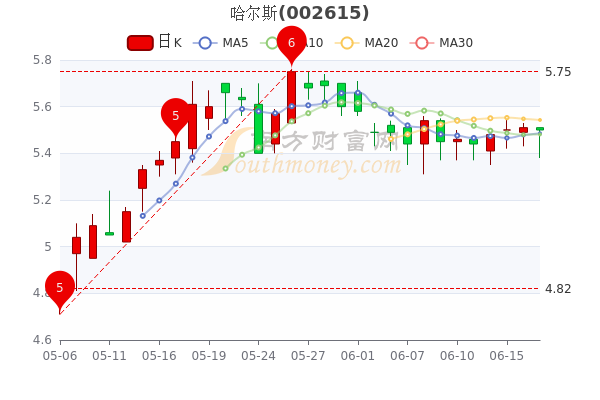 6月17日消息,哈尔斯5日内股价上涨1.09%,最新报5.5元,成交量4.31万手,总市值为22.75亿元。