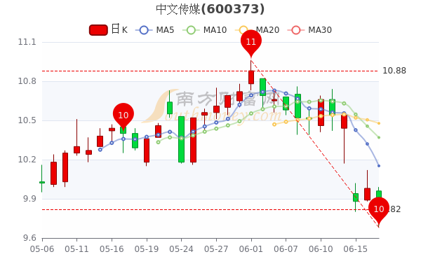 6月17日收盘消息,中文传媒3日内股价下跌0.61%,最新报9.82元,成交额1.23亿元。