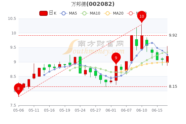 6月17日消息,万邦德今年来涨幅下跌-58.48%,截至15点,该股报9.2元,涨1.21%,换手率4.7%。