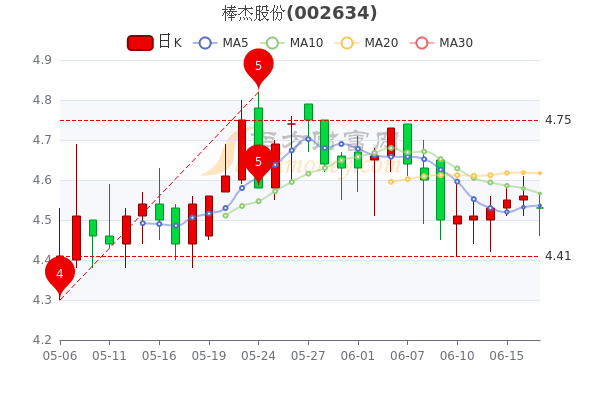 6月17日收盘短讯,棒杰股份股价15时跌0.66%,报价4.53元,市值达到20.81亿。