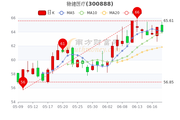 6月20日消息,稳健医疗开盘报价65元,收盘于64.03元,跌1.04%。今年来涨幅下跌-31.97%,市盈率22。