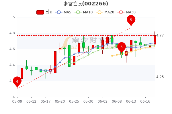 6月20日浙富控股开盘报价4.66元,收盘于4.77元,涨2.58%。当日最高价为4.82元,最低达4.66元,成交量44.74万手,总市值为256.14亿元。
