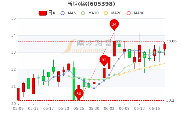 6月20日晚间复盘消息,新炬网络最新报33.39元,成交量4046手,总市值为19.93亿元。