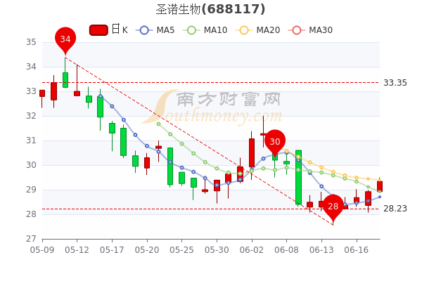 6月20日晚间复盘消息,圣诺生物5日内股价上涨3.78%,今年来涨幅下跌-24.4%,最新报29.34元,涨1.45%,市盈率为34.52。
