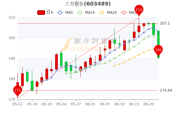 6月22日盘后消息,八方股份最新报价190.4元,3日内股价下跌8.61%,市盈率为37.78。
