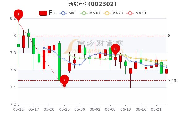 6月23日消息,西部建设开盘报价7.56元,收盘于7.61元。3日内股价下跌1.45%,总市值为96.07亿元。
