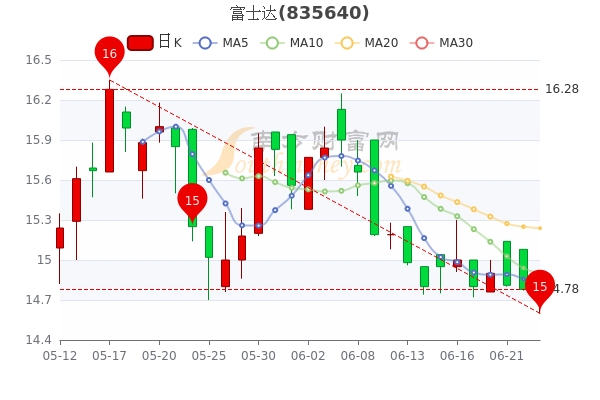6月23日,富士达开盘报价14.74元,收盘于14.75元,跌0.2%。今年来涨幅下跌-43.86%,总市值为27.69亿元。