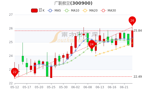6月23日消息,广联航空最新报价25.84元,3日内股价上涨2.09%;今年来涨幅下跌-37.89%,市盈率为143.56。