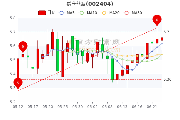 6月23日盘后消息,嘉欣丝绸5日内股价上涨2.3%,今年来涨幅下跌-4.77%,最新报5.66元,成交额2731.53万元。