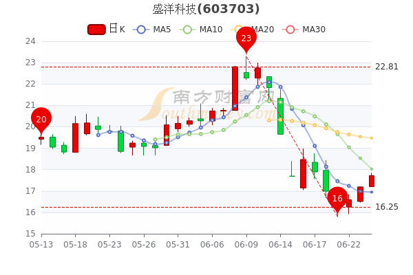 6月24日盘后消息,盛洋科技最新报17.72元,成交量8.26万手,总市值为52.91亿元。