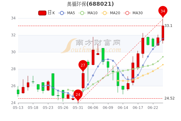 6月24日讯息,奥福环保3日内股价上涨7.37%,市值为25.58亿元,涨4.45%,最新报33.1元。
