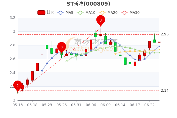 6月24日晚间复盘消息,ST新城最新报价2.85元,涨0.35%,3日内股价下跌0.35%;今年来涨幅下跌-18.6%,市盈率为-16.57。