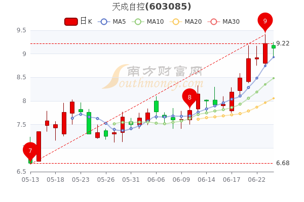天成自控最新报价9.12元,7日内股价上涨13.05%;今年来涨幅上涨10.64%,市盈率为114。