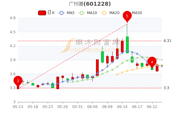 6月24日收盘消息,广州港开盘报价3.78元,收盘于3.78元,成交额1.43亿元。