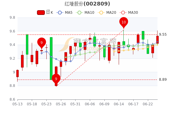 6月24日消息,红墙股份最新报9.53元,涨1.38%。成交量1.47万手,总市值为19.87亿元。