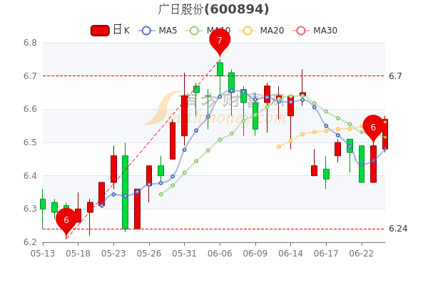 6月24日收盘消息,广日股份开盘报6.48元,截至15时收盘,该股涨1.23%,报6.57元,总市值为56.5亿元,PE为8.76。