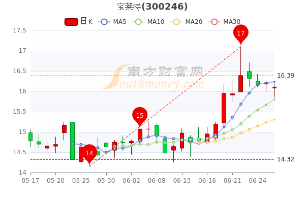 6月28日消息,宝莱特7日内股价上涨0.93%,最新报16.1元,市盈率为36.87。