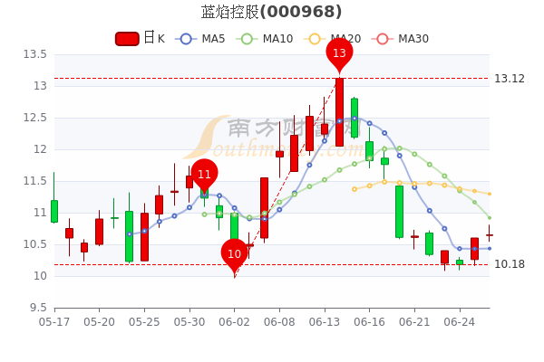 6月28日消息,蓝焰控股开盘报10.64元,截至15点,该股涨0.85%,报10.69元。换手率3.88%,振幅0.472%。