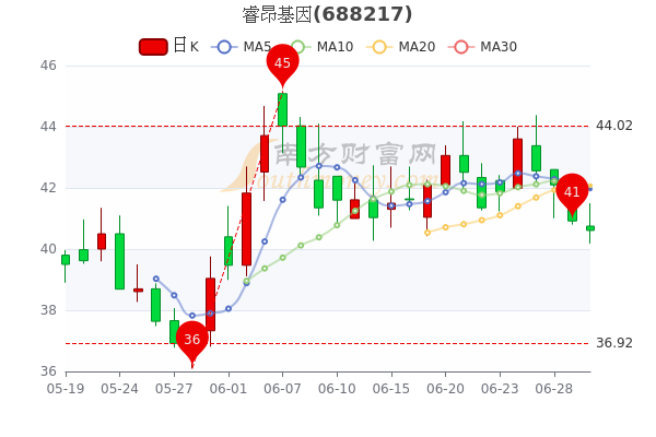 睿昂基因最新报价40.61元,7日内股价下跌1.82%;今年来涨幅下跌-75.06%,市盈率为42.75。