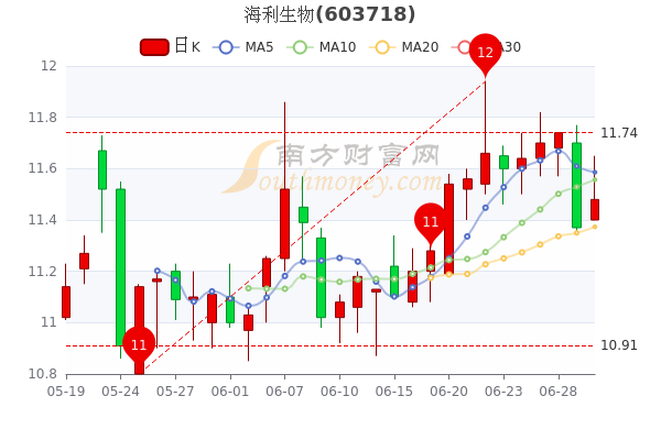 截止下午3点收盘,海利生物报11.48元,涨0.97%,总市值73.93亿元。