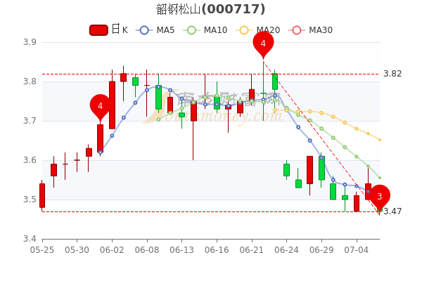 7月6日消息,韶钢松山开盘报价3.53元,收盘于3.47元,跌1.98%。今年来涨幅下跌-39.19%,市盈率4.37。