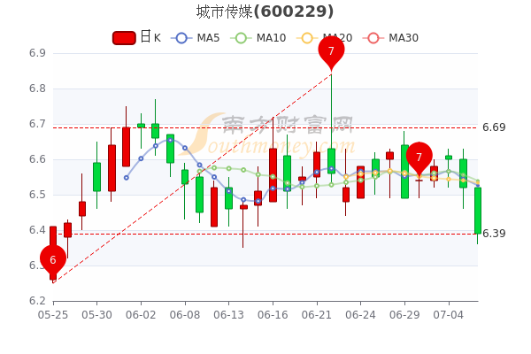 7月6日收盘消息,城市传媒开盘报价6.52元,收盘于6.39元。5日内股价下跌2.35%,总市值为44.86亿元。