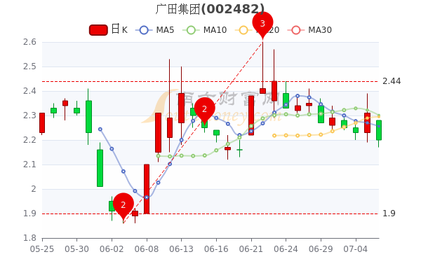 7月6日消息,广田集团今年来涨幅下跌-14.55%,截至下午3点收盘,该股报2.2元,跌4.76%,换手率2.83%。
