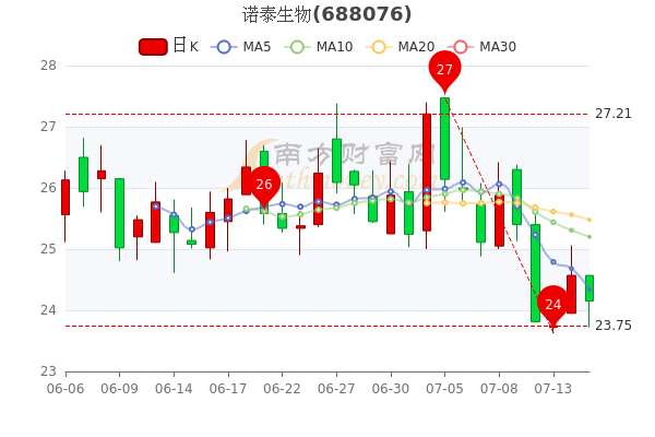 7月15日诺泰生物早盘消息,7日内股价下跌5.7%,今年来涨幅下跌-64.84%,最新报24.15元,跌1.71%,市值为52.38亿元。