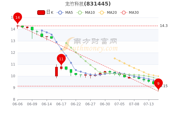 7月15日午后消息,龙竹科技7日内股价下跌6.55%,最新跌1.93%,报9.15元,换手率0.03%。