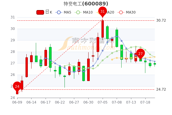 7月20日收盘消息,特变电工最新报价26.9元,涨0.49%,3日内股价下跌0.89%;今年来涨幅上涨23.47%,市盈率为14.29。
