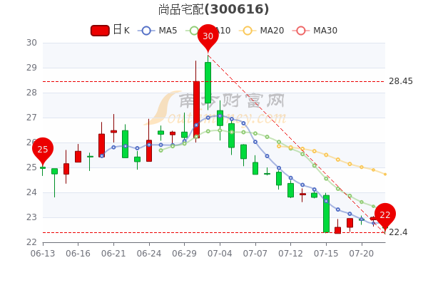 7月22日,尚品宅配收盘跌1.7%,报于22.61。当日最高价为23.21元,最低达22.58元,成交量8444手,总市值为44.84亿元。
