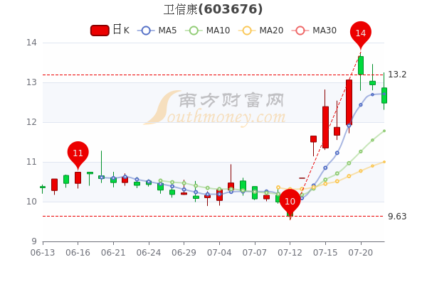 7月22日消息,卫信康今年来涨幅上涨24.28%,截至下午3点收盘,该股报12.39元,跌4.25%,换手率2.51%。