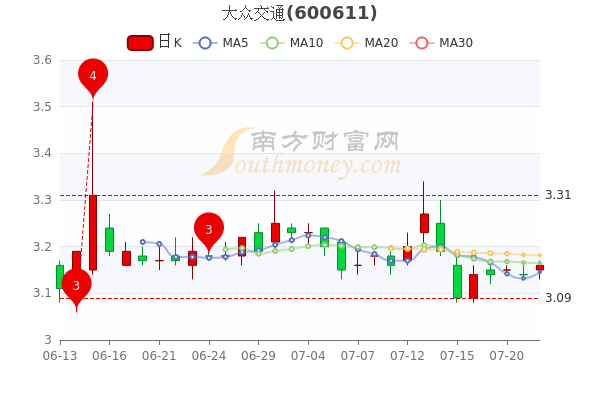 7月22日消息,大众交通今年来涨幅下跌-11.39%,截至下午三点收盘,该股报3.16元,涨0.64%,换手率0.4%。
