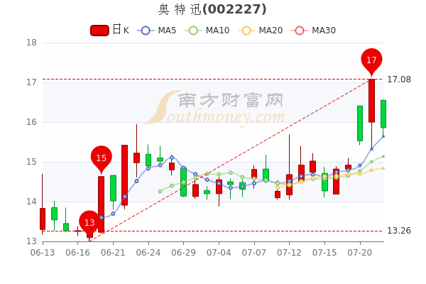 截至发稿,奥特迅(002227)跌7.14%,报15.86元,成交额4.83亿元,换手率12.22%,振幅-7.143%。