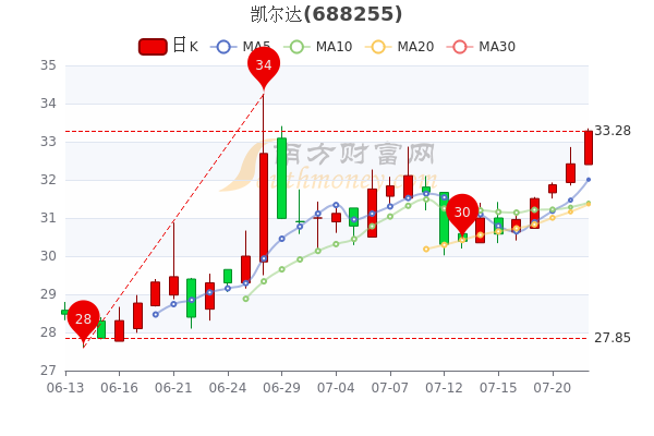 7月22日消息,凯尔达最新报33.28元,涨2.65%。成交量5629手,总市值为26.1亿元。