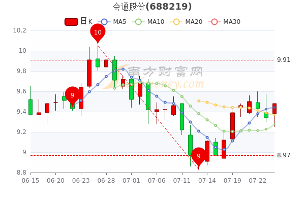 7月26日盘后短讯,会通股份股价15时收盘涨1.5%,报价9.48元,市值达到43.54亿。