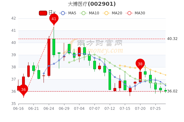 7月27日讯息,大博医疗3日内股价下跌1.63%,市值为150.59亿元,跌0.25%,最新报36.02元。