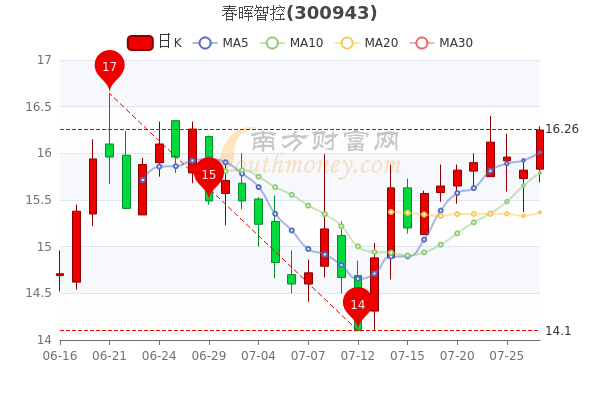 春晖智控(300943)涨2.72%,报16.25元,成交额1356.46万元,换手率0.86%,振幅0.885%。