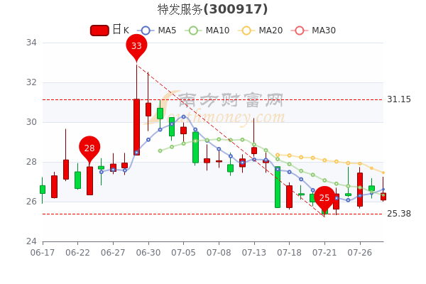 7月28日特发服务3日内股价上涨0.49%,截至15时,该股报26.59元涨0.15%,成交1.69亿元,换手率7.39%。