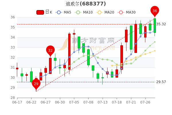 7月28日消息,迪威尔开盘报价35.88元,收盘于34.47元,跌0.69%。当日最高价35.88元,最低达34.12元,总市值67.1亿。