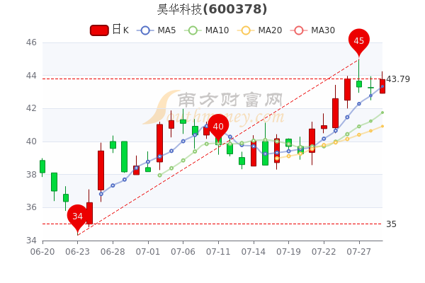7月29日消息,昊华科技5日内股价上涨6.4%,该股最新报43.76元涨1.18%,成交8258.7万元,换手率0.21%。