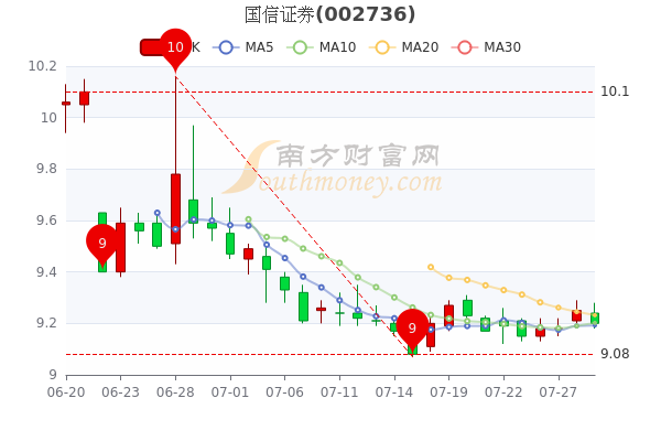 7月29日国信证券开盘报价9.24元,收盘于9.23元,跌0.22%。当日最高价为9.28元,最低达9.22元,成交量4.94万手,总市值为884.34亿元。