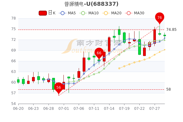 7月29日收盘消息,普源精电-U(688337)跌0.34%,报73.22元,成交额4602.87万元。
